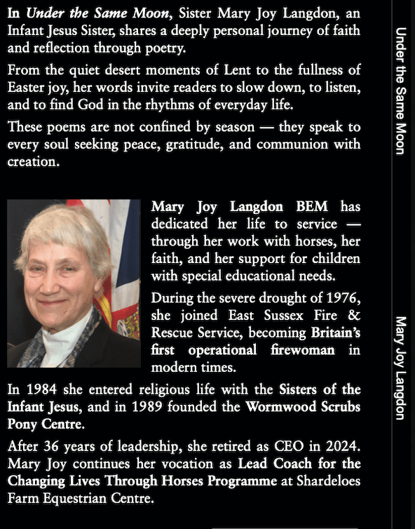 The retreat will be held at 5pm -6.30pm on each Friday during lent. During the retreat the lenten poems & reflections from the book “Under the Same Moon” will be used for prayer and meditation plus passages of scripture. It is suggested that anyone attending the retreat gifts to themselves 30 minutes each day for personal prayer.